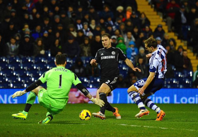 Nem tudta kihúzni a végéig a Chelsea, amely a szünet előtt szerzett vezetést egy szöglet utáni szituáció közepette a szerb Braniszlav Ivanovics révén. A cserecsatár Victor Anichebe a 87. percben egyenlített fejesből a 26. forduló bajnokiján. A West Brom ezzel elmozdult a kiesőzónából. Gera Zoltánt ezúttal nem küldte játékba spanyol menedzsere. A Chelsea elveszíti az első helyet, ha az Arsenal vagy a City nyerni tud szerda este.